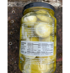 Ingrédients : Piments verts 50%, en poids sec, huile de tournesol, fromage : feta 22,5% en poids sec, fromage mizitha, fromage edesma (eau, huile végétale hydrogénée 10%, lait en poudre écrémé, protéines de lait, fécule de maïs, gélatine, émulsifiant E471, ferments lactiques), épices, menthe fraiche, chlorure de calcium, régulateur d’acidité : acide lactique conservateurs : sodium de benzoate, sorbate de potassium, stabilisateur : gomme de xantane.